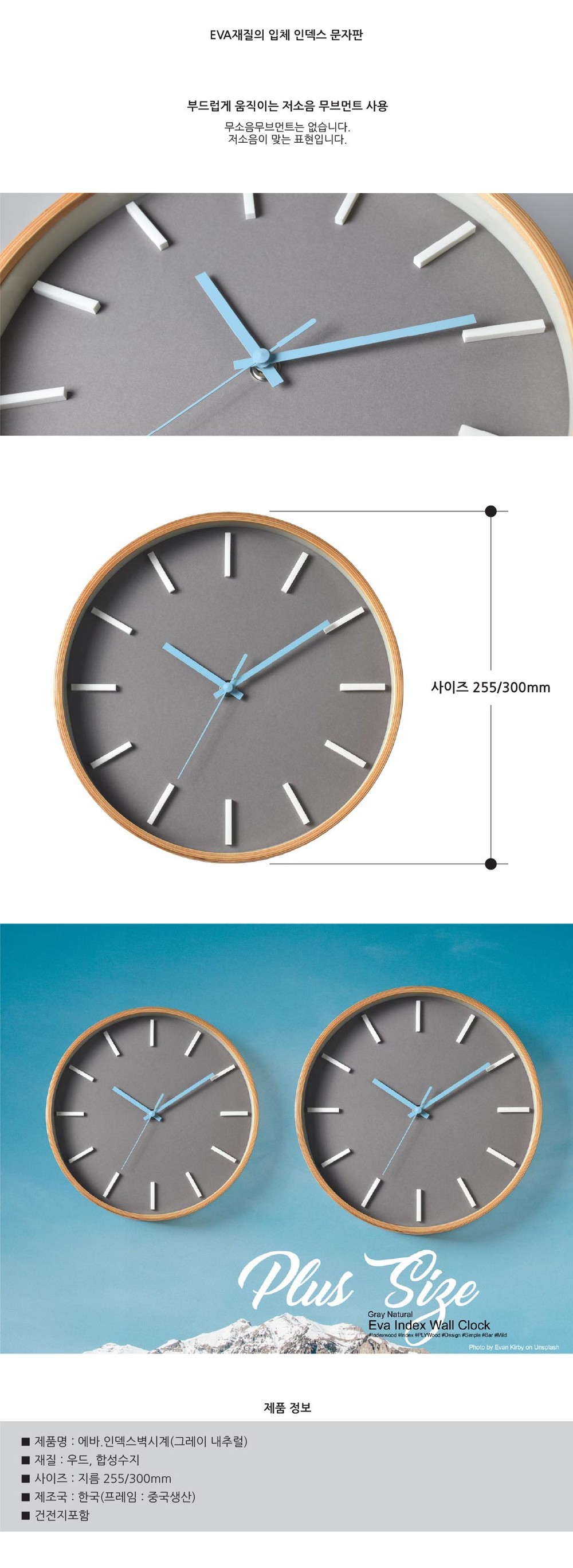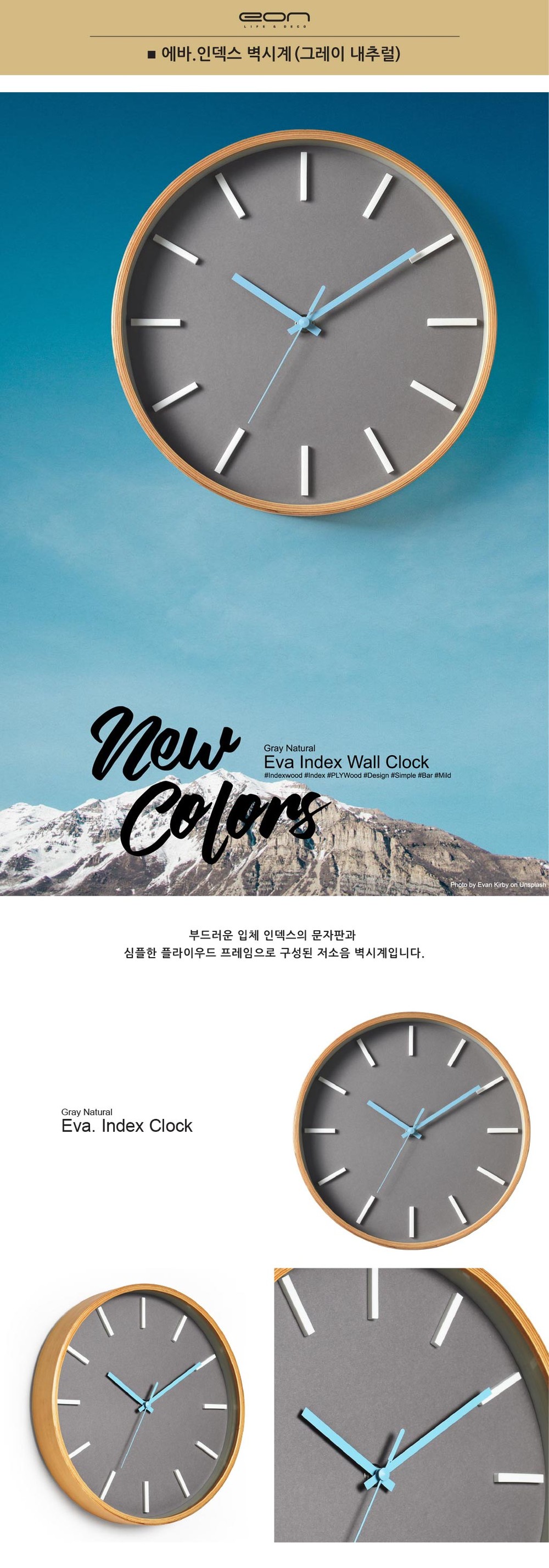 에바.인덱스벽시계(Gray Natural)