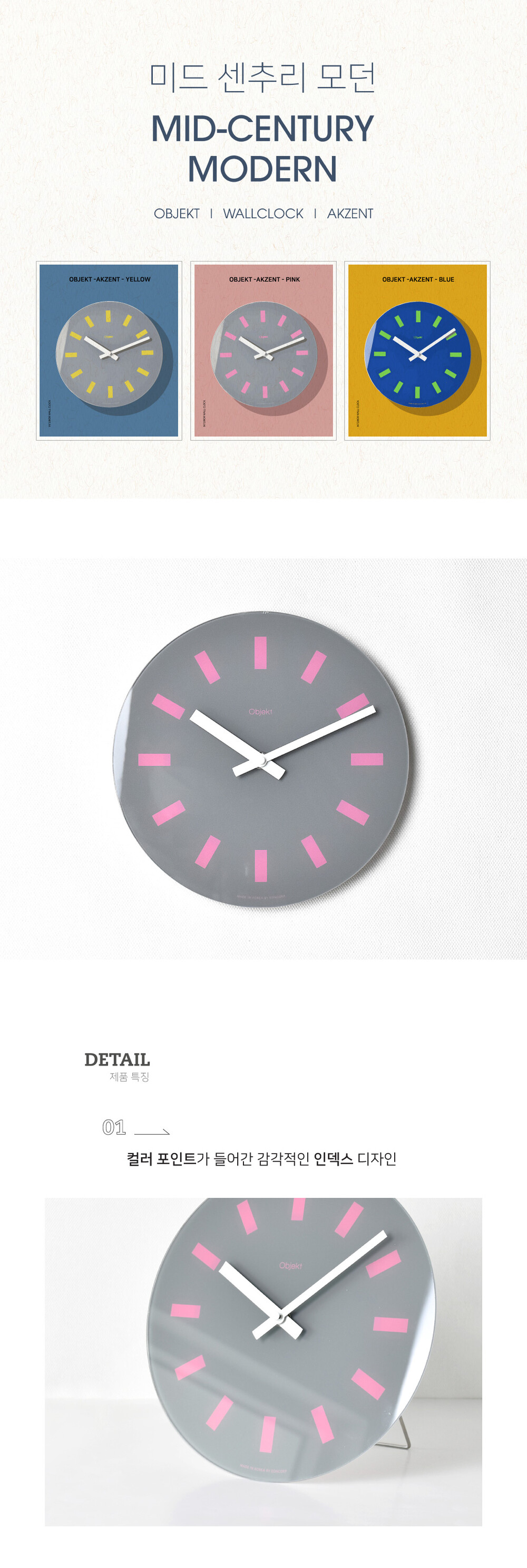 오브제 벽시계/악센트(핑크)