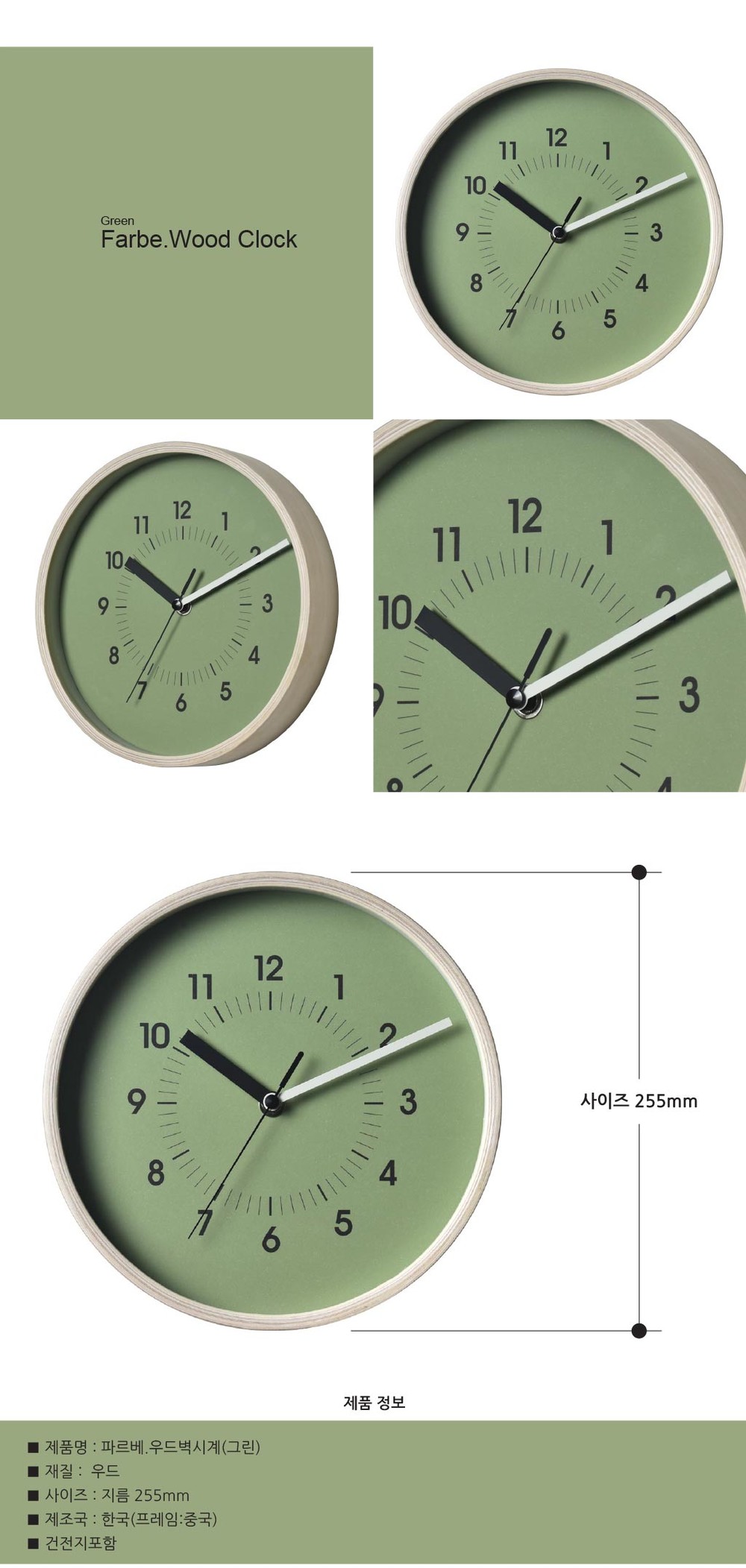파르베.우드벽시계(Green)