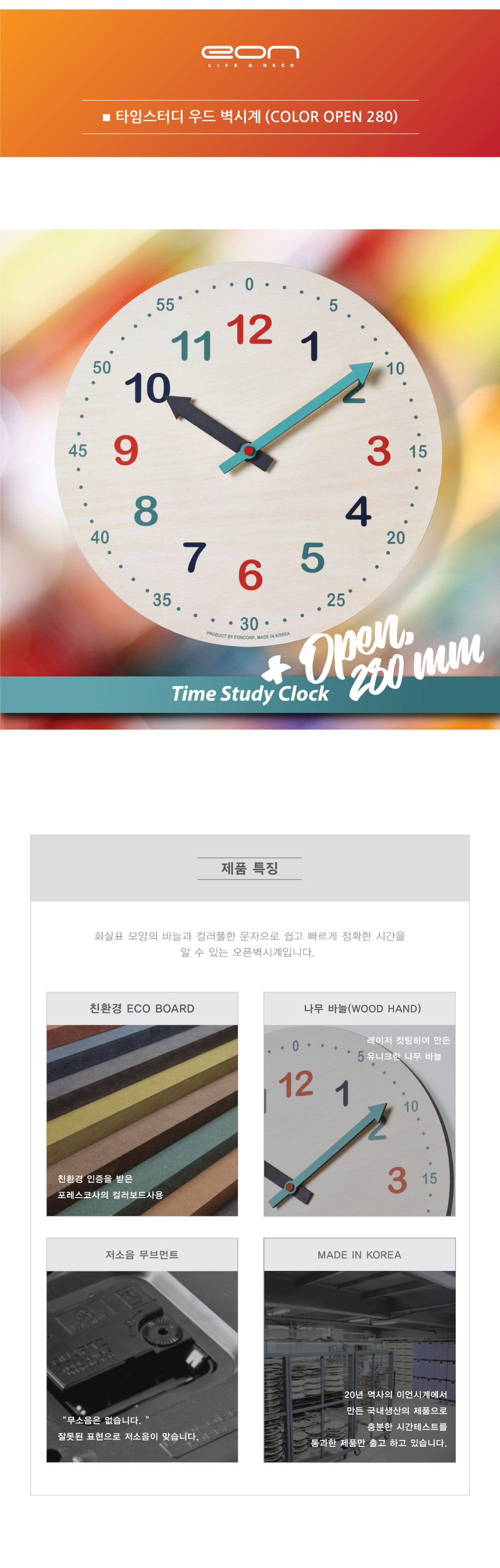 타임스터디.우드벽시계 ( 컬러오픈 280)