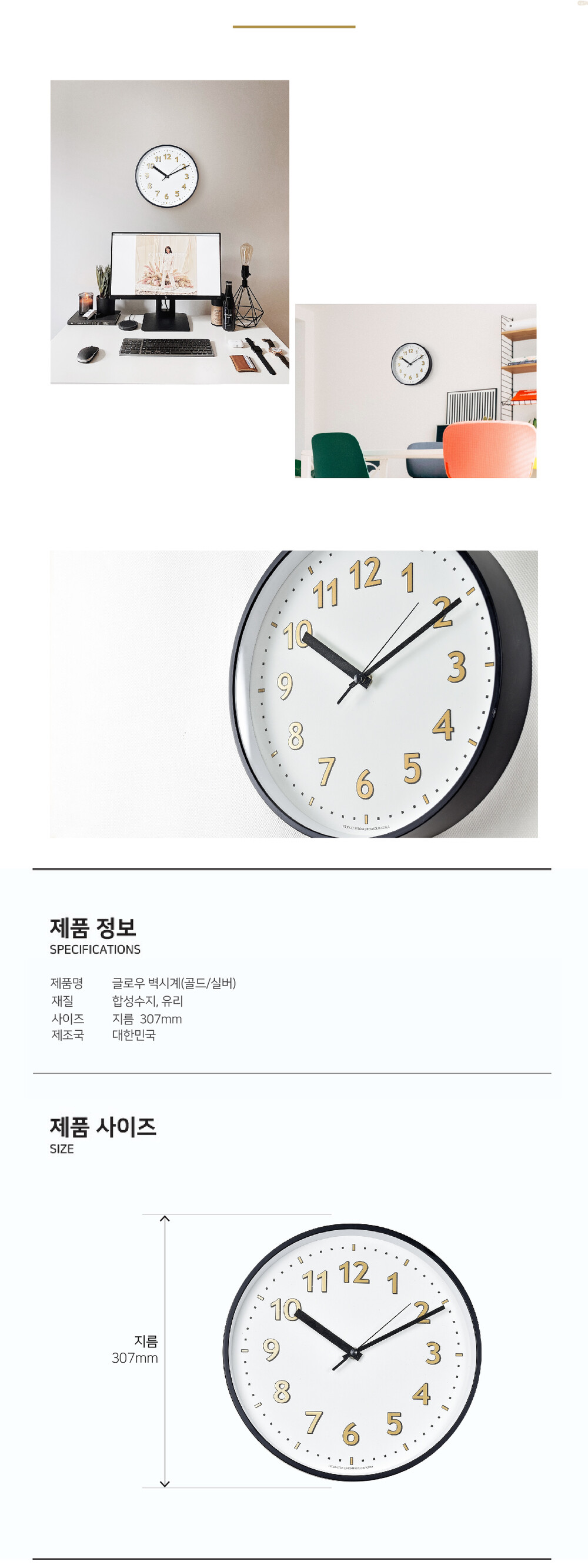 글로우 벽시계(골드)